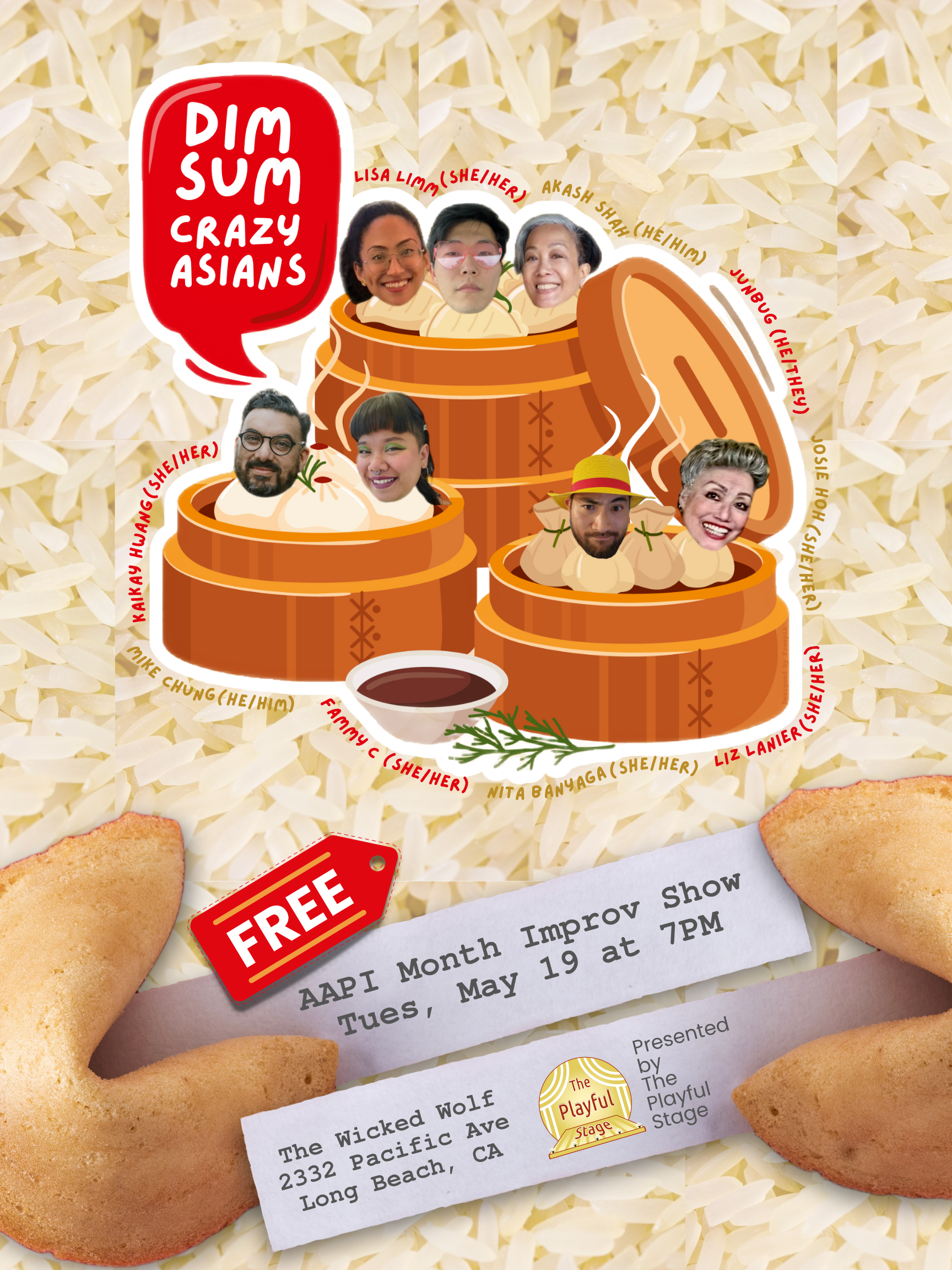Dim Sum Crazy Asians is an all AAPI improv show created by students of The Playful Stage, blending fast-paced short form games with a vibrant celebration of AAPI heritage and culture. Expect bold characters, playful storytelling, and moments inspired by lived experiences, cultural touchstones, and pure comedic joy.